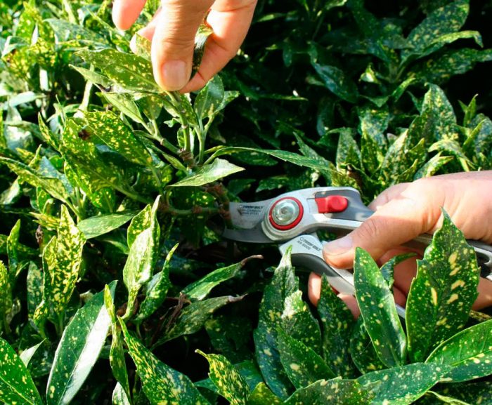 formowanie przycinania aukuby odbywa się w marcu, w tym samym czasie młode pędy są uszczypnięte, dzięki czemu Korona będzie bardziej bujna i spektakularna. Przycięte wierzchołki łodyg można wykorzystać jako sadzonki.