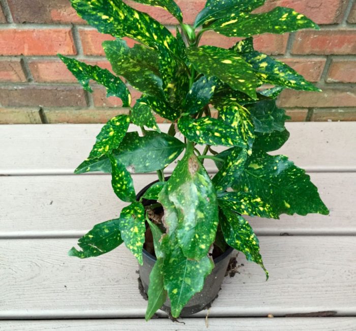 - liście aukuby bledną . Obserwuje się to, jeśli oświetlenie jest zbyt intensywne.