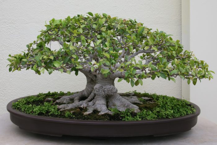 roślina ficus microcarpa to miniaturowe drzewo, które jest również nazywane Bonsai. Bonsai to sztuka uprawy miniaturowych drzew w warunkach mieszkaniowych, które są bardzo podobne do ich dużych krewnych.