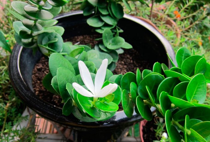 roślina kwitnie bardzo długo, a raczej prawie przez cały rok. Rurkowe, proste kwiaty mają 5 płatków. Mogą być pomalowane na różowo lub biało, a kwiaty rosną w kątach liści na końcach łodyg. Kwiaty można zbierać w kwiatostany o małych kwiatostanach lub być pojedyncze. Zewnętrznie mają wyraźne podobieństwo do kwiatów jaśminu sambak i różnią się tylko mniej silnym aromatem. Średnica kwiatu może osiągnąć 1-5 centymetrów.