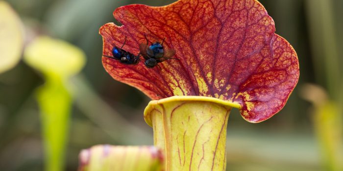 są takie owady, które mogą spokojnie żyć w tych pułapkach dzbanów. Faktem jest, że są w stanie wytwarzać specjalne substancje, które chronią owada przed działaniem soku trawiennego. D. Fish (1976) studiował to bardziej szczegółowo i pisze o tym, że larwy much mięsnych, ćma nocna ze swoimi larwami i Osa sfex mogą spokojnie żyć w dzbanach pułapek, udaje się tam również tworzyć gniazda. Owady te niszczą większość uwięzionych ofiar. A także znacznie uszkadzają tkanki liści, z których pułapki nie mogą już normalnie funkcjonować. W rezultacie owady te są w stanie bardzo zaszkodzić całym populacjom sarracenii.