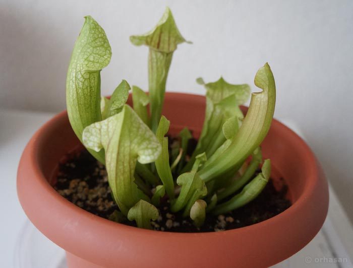 w przypadku, gdy ten mięsożerca jest sadzony w pobliżu stawu w ogrodzie, nie należy go podlewać. Pobierze wymaganą ilość płynu z ziemi. Podczas uprawy w pojemniku konieczne jest intensywne podlewanie. Gleba musi być cały czas nawilżona. Zimą podlewanie powinno być nieco zmniejszone, ponieważ roślina rozpoczyna okres spoczynku. Podczas intensywnego wzrostu należy upewnić się, że doniczka znajduje się w wodzie na wysokości około 25 milimetrów. Między październikiem a kwietniem podlewanie należy wykonywać 1 raz na 7 dni. Po przesadzeniu należy zwiększyć podlewanie. Tak więc w tym czasie konieczne jest podlewanie sarracenii 1 raz dziennie.