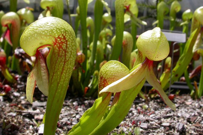 aby darlingtonia czuła się najlepiej, musisz zapewnić jej warunki do wzrostu podobne do naturalnych. Potrzebujesz więc dość szerokiej doniczki. Na jego dnie należy położyć warstwę złożoną z ekspandowanej gliny lub perlitu, jej grubość powinna wynosić od 3 do 5 centymetrów. Następnie musisz umieścić mech torfowiec (grubość 1 centymetra). Następnie do doniczki należy wlać mieszankę ziemi składającą się z piasku (czystego bez wapienia), torfu i perlitu, pobranych w równych częściach. Można również mieszać 1 część białego piasku i 1 część torfu. Najwyższa warstwa powinna składać się z mchu. W ten sposób roślina otrzyma chłód i wilgotność.