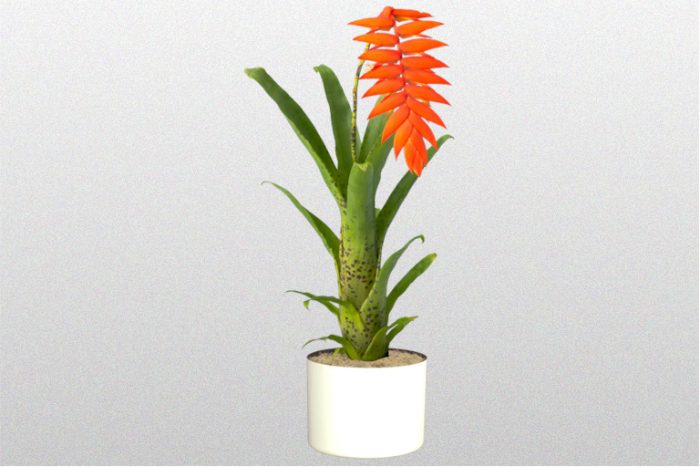 bardzo piękna roślina jest epifitem, który ma spektakularne kwiatostany. Przylistki są pomalowane na bogaty czerwony kolor. Kwitnienie występuje latem. Ze środka rozety wyrasta niezbyt gęsty kwiatostan, który ma kształt Kłoska i przyczepia się do długiej ogonki.