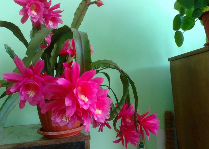 po tym, jak kwiat zaczyna aktywnie rosnąć (z reguły w ostatnich tygodniach zimowych), pąki układają się na pogrubionych otoczkach. Nie zmieniaj w tym czasie doniczki, aby roślina nie zrzuciła pąków. Kwitnienie z reguły rozpoczyna się wiosną, a po kwitnieniu kwiat spada po 5 dniach. W okresie kwitnienia Epiphyllum wymaga dobrego podlewania, nawilżania i górnego opatrunku. Jeśli dobrze się nim opiekujesz, ponownie zakwitnie jesienią.