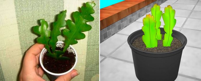 sadzonki są cięte wyłącznie z płaskich pędów,a ich długość powinna wynosić 10-15 centymetrów. Po zaostrzeniu podstawy cięcia (trójkątny kształt) i wysuszeniu jest "umieszczony" w pustym małym pojemniku, tak aby był skierowany pionowo w dół. Tam powinien pozostać przez 2 lub 3 dni. Do sadzenia potrzebne będą doniczki o średnicy 7 cm, które należy wypełnić mieszanką ziemi o następującej kompozycji: piasek miesza się z darnią i ziemią liściastą w stosunku 1:4:5. Górna warstwa równa 2 cm powinna składać się z przemytego piasku rzecznego. Przygotowane sadzonki są sadzone na głębokości centymetra i nie podlewane przez 1 dzień, a także w tym czasie są usuwane w zacienionym miejscu.