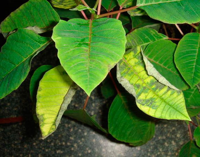 dlaczego liście poinsecji żółkną