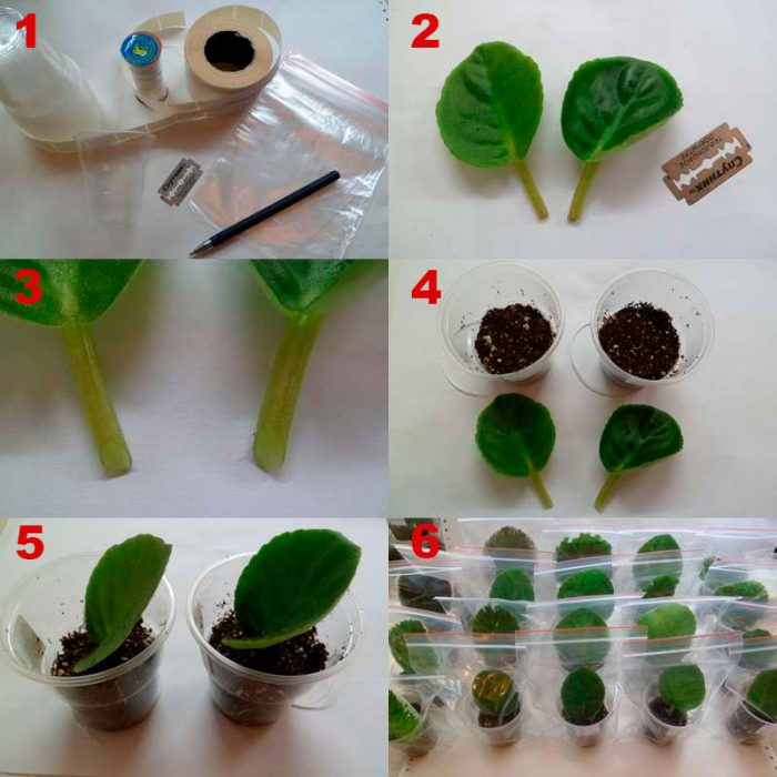w tym przypadku roślina zapuści korzenie nieco później, a gdzieś po miesiącu mogą pojawić się młode liście. Po dorastaniu młodych roślin przesadza się je do osobnych doniczek. Niektóre odmiany fiołków nie mogą być rozmnażane przez sadzonki liści, ponieważ nie będą wyglądać jak ich krewni. Aby fiołki były takie same po rozmnażaniu, są rozmnażane przez szypułki. Aby to zrobić, weź najsilniejsze i najzdrowsze szypułki, odetnij je i włóż do kubków, a także sadzonek. Po pewnym czasie małe liście pojawią się w zatokach małych liści. Podlewaj je znacznie mniej niż sadzonki liści.