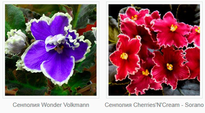 odmiany Saintpaulia ze zdjęciami i nazwami