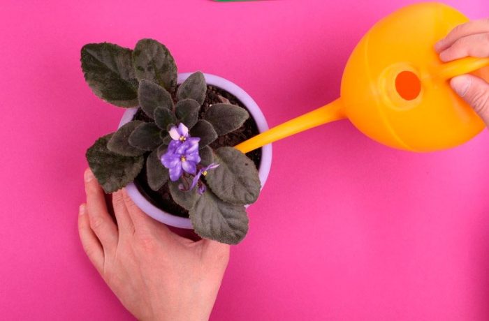 osadzona woda z kranu nadaje się do nawadniania, ale można ją podlewać zarówno deszczem, jak i roztopem, jeśli nie ma problemów z ekologią. W każdym razie woda powinna się osiąść. Podczas podlewania należy kontrolować, aby wilgoć nie dostała się do gniazda i na liście. Innymi słowy, należy podlewać pod korzeniem. Jeśli Na zewnątrz jest ciepła pogoda, podlewanie można zwiększyć, jeśli jest zimno, podlewanie można zmniejszyć. Najlepszym wskaźnikiem intensywności podlewania mogą być jego liście. Jeśli liście są elastyczne i mięsiste, podlewanie mieści się w normalnym zakresie, a jeśli liście zaczęły opadać i stały się powolne w dotyku, podlewanie powinno zostać zwiększone. Podczas suszenia ziemi możliwe jest obumieranie cienkich korzeni, które aktywnie pochłaniają wilgoć. Podczas podlewania gleby możliwe jest gnicie systemu korzeniowego. Bardzo często zdarza się, gdy fiołek jest sadzony w zbyt dużej doniczce. Aby chronić roślinę przed chorobami grzybiczymi, raz w miesiącu roślina jest podlewana słabym roztworem nadmanganianu potasu.