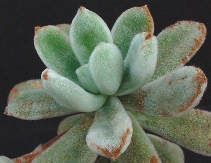 jeśli zbyt często podlewasz echeverię lub jeśli woda stale stagnuje w mieszaninie gleby, może to prowadzić do rozwoju chorób grzybiczych. Aby tego uniknąć, konieczne jest prawidłowe podlewanie rośliny, a raczej dopiero po całkowitym wyschnięciu śpiączki ziemi w doniczce.