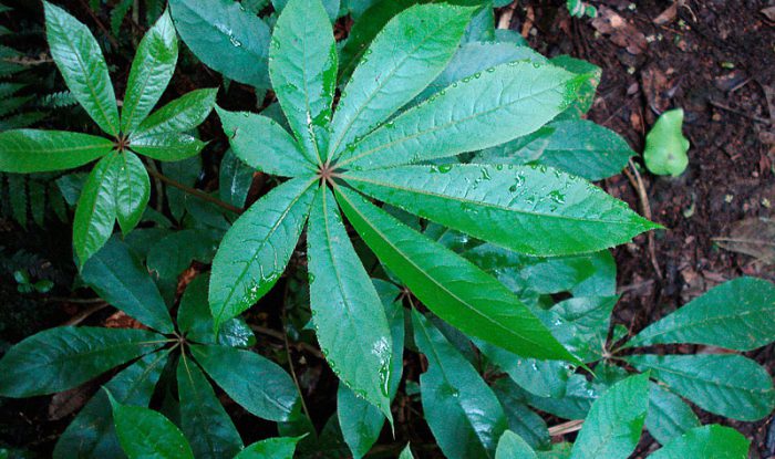 ta roślina jest bardzo ceniona przez hodowców kwiatów za piękne, spektakularne liście, które są bardzo podobne do ludzkiej dłoni, której palce są oddalone od siebie. Blaszki liściowe są umieszczone na wysokim ogonku i są podzielone na 4-12 płatów, które wyrastają z 1. punktu. W niektórych krajach ten kwiat nazywa się parasolem krasnoludów lub drzewem parasolowym.