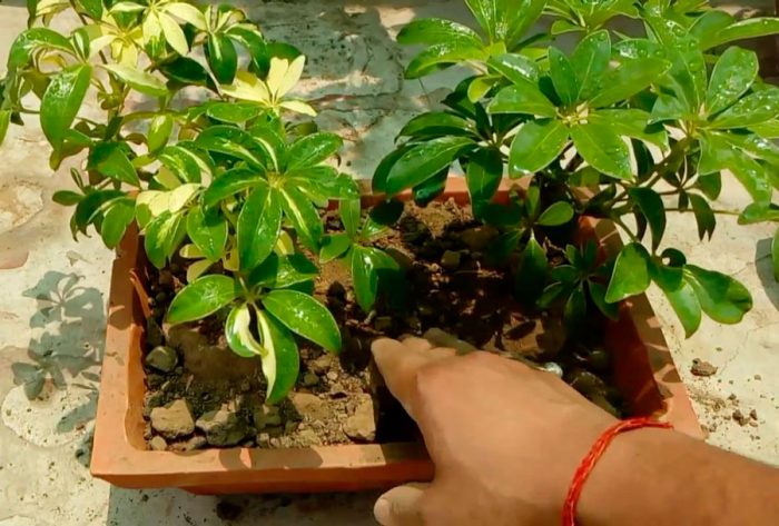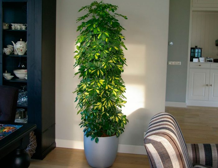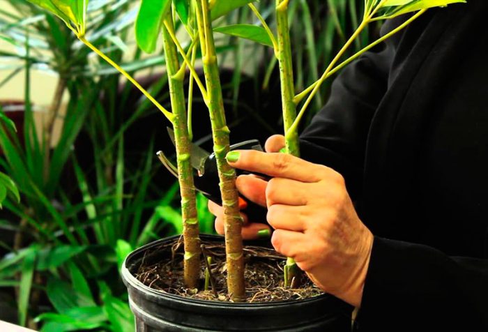aby krzak był bardziej bujny, kilka roślin często sadzi się w jednej doniczce. Nabierają kształtu drzewa poprzez przycinanie. Jeśli jednak zostanie to zrobione z naruszeniem zasad, może to zaszkodzić schefflerowi.