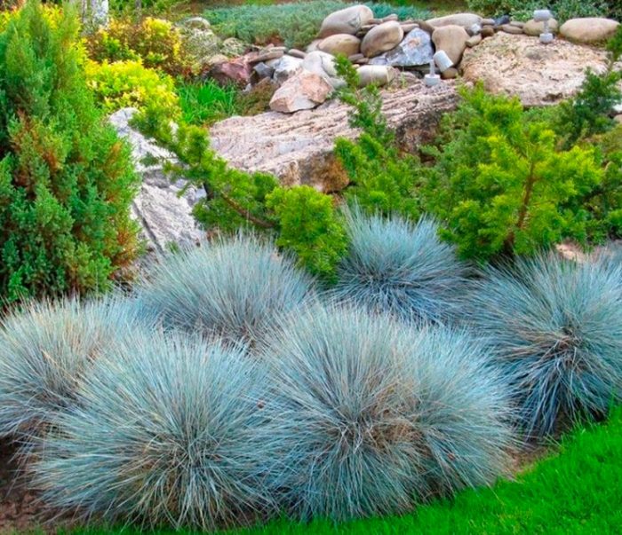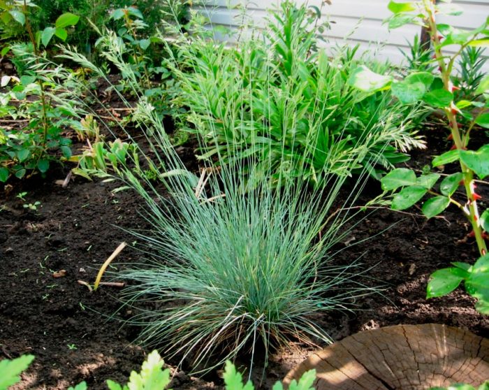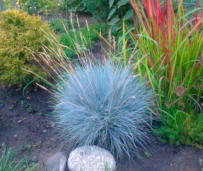 gęsta murawa o kształcie kuli wygląda bardzo podobnie do guzka, którego wysokość wynosi od 0,5 do 0,6 m.zdobią ją bujne niebiesko-niebieskie lub srebrno-zielone liście o wąskim liniowym kształcie. Zielonkawo-szare kwiatostany paniki różnią się również przepychem. Jednocześnie, gdy więdną, są pomalowane na słomkowy odcień. Ta kochająca ciepło roślina może umrzeć z powodu silnych mrozów.