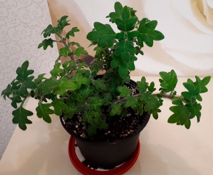 wyprostowane pędy takiej rośliny są mięsiste. Ciemnozielone skórzaste płytki liściowe z ząbkowaną krawędzią mają kształt podobny do liści dębu, ich powierzchnia pokryta jest srebrzystym pokwitaniem. Odrywając liść i pocierając go między palcami, możesz poczuć ostry zapach drzew iglastych.