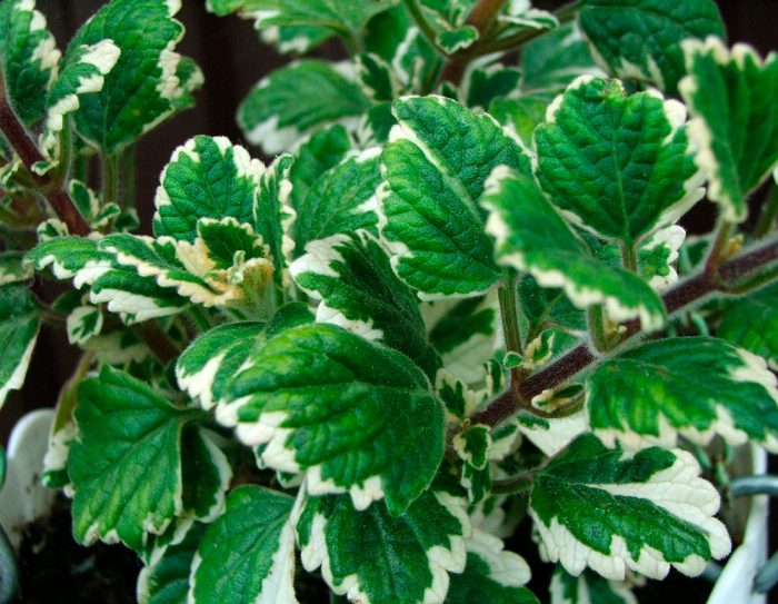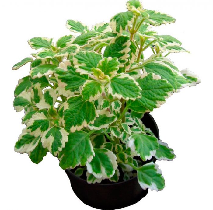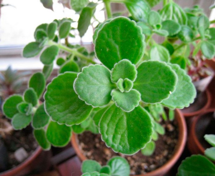 domowy plectrantus, zwany także miętą pokojową, jest zielną byliną lub zimozielonym krzewem, osiągającym wysokość od 0,6 do 0,8 m.system korzeni jest włóknisty, a rozgałęzione łodygi mogą rosnąć pionowo lub pełzać. Bogata zielona lub brązowo-czerwona żebrowana łodyga ma lekkie pokwitanie. Pachnące jajowate lub owalne płytki liściowe, które znajdują się naprzeciwko, są gęsto owłosione lub nagie, ich krawędź jest drobno ząbkowana. Na powierzchni liści znajduje się pstrokaty wzór lub Relief żył. Kwitnienie obserwuje się latem, na krzaku pojawia się bujny krótki wierzchołkowy kwiatostan w kształcie wiechy, który obejmuje Biseksualne kwiaty bzu, niebieskiego, białego lub fioletowego. Po dojrzewaniu owoce otwierają się same, są w nich 4 orzechy.