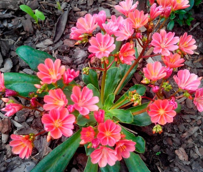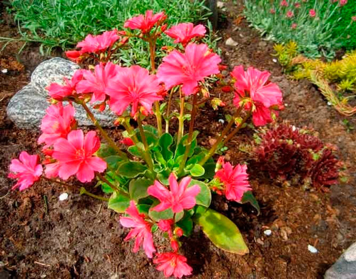jesienią i wiosną krzewy levisia zdobią spektakularne zielone płytki liści. W kwietniu lub maju pojawiają się na nich liczne kwiaty o bogatym kolorze. Taka bylina kwitnie w ostatnich dniach września.