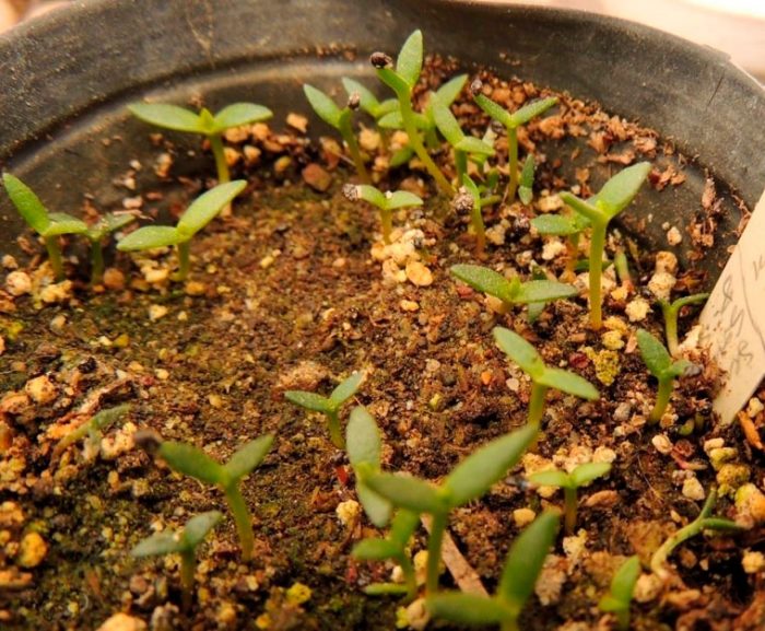 można zrobić inaczej. Małe pojemniki są wypełnione luźną wilgotną mieszanką gleby,a następnie siew levisia. Nasiona pokryte są cienką warstwą gleby. Górny pojemnik jest przykryty szkłem. Umieszcza się go w zimnym miejscu na miesiąc. A po pojawieniu się na nim pierwszych kiełków pojemnik jest przestawiany na ciepło. Poczekaj, aż sadzonki utworzą 2 lub 3 prawdziwe płytki liściowe.