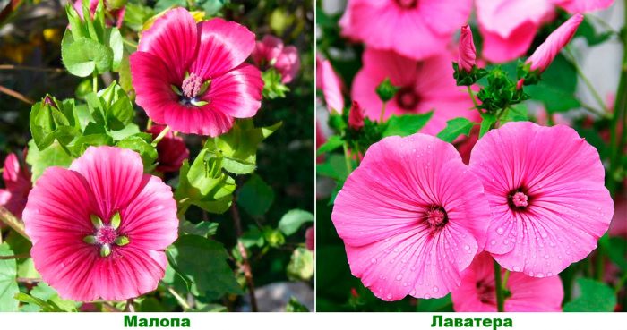 niedoświadczeni ogrodnicy często mylą niektóre odmiany malopa z inną kulturą ogrodową-lavaterą. Ale są to zupełnie różne rośliny, które znacznie się od siebie różnią.