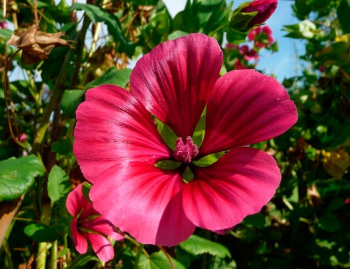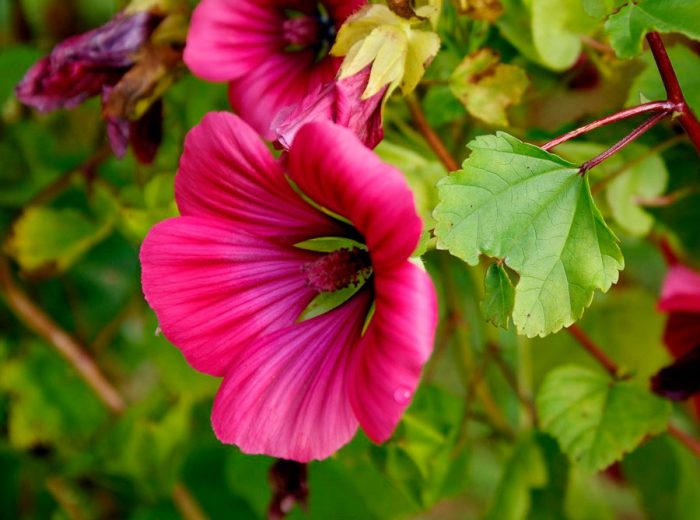 podczas kwitnienia krzewy malopa wyglądają najbardziej dekoracyjnie. W tym okresie otwierają się na nich duże kwiaty w kształcie lejka, charakteryzujące się wysoką dekoracyjnością. Kwiaty malwy i malopy mają wiele podobieństw, ale istnieją między nimi różnice. W dziurze kwiaty są bardziej eleganckie i mają bogatszy kolor.