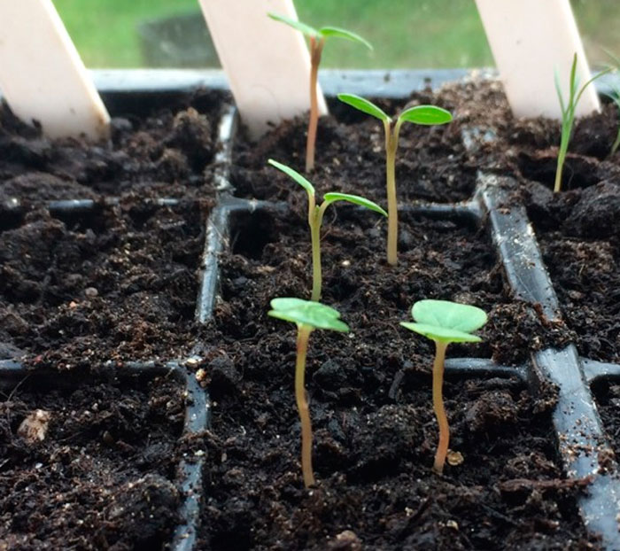Nie zapomnij systematycznie wentylować i nawilżać upraw, a natychmiast po pojawieniu się pierwszych kiełków pamiętaj o usunięciu schronienia. Młode sadzonki są przenoszone do dobrze oświetlonego miejsca, chronionego przed bezpośrednim działaniem promieni słonecznych. Zapewniają również regularne umiarkowane podlewanie. Zaleca się przeszczepienie sadzonek do osobnych filiżanek po pojawieniu się pierwszych prawdziwych płytek liściowych.