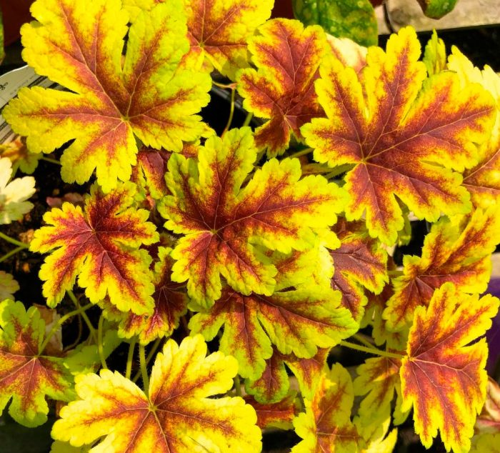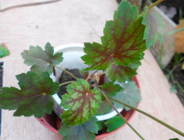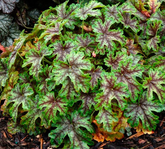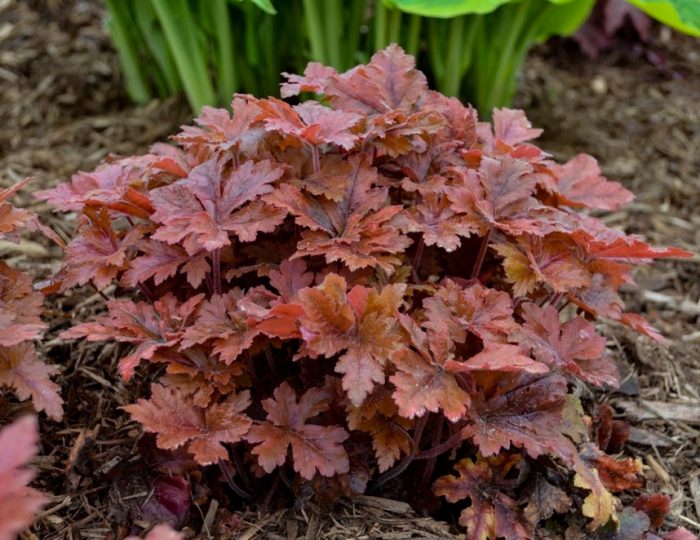ta zwarta roślina ma karmelowy czerwony odcień. W średnicy osiąga nie więcej niż 30 centymetrów, a jego wysokość waha się od 15 do 20 centymetrów. Najlepszym miejscem do jego uprawy jest koronkowy Cień dużych drzew. Wiosną liście są pomalowane na czerwono, a jesienią zmienia się na bordowy. Roślina ta doskonale nadaje się do skalniaków i granic, a także świetnie wygląda wraz z pelargoniami, gospodarzami i innymi odmianami geicherelli.