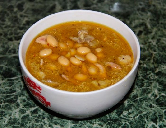 aby przygotować zupę, najpierw musisz wziąć patelnię i wlać do niej 3 litry czystej wody, a następnie włożyć obraną i posiekaną cebulę, grzbiety kurczaka, a także laurushkę. Z tych produktów należy przygotować bulion. Z gotowego bulionu wyjmij laurushkę, kurczaka i cebulę. Ostrożnie wyjmij wszystkie kości z mięsa. Odcedź bulion, aby był przezroczysty. Wcześniej zalej fasolę dolichos ciepłą wodą,aby miały czas na cztery godziny. Dodaj śmietanę do gotowego bulionu i wszystko dobrze wymieszaj. Następnie wlewa się do niego przyprawy, drobno posiekane chili, przyprawy, przygotowaną fasolę i kurczaka. Postaw garnek na ogniu i pozwól zupie się zagotować, a następnie zmniejsz ogień i gotuj naczynie, aż będzie całkowicie ugotowane. Kiedy zupa jest gotowa do połowy, wkłada się do niej sól. Ułóż gotowe danie na talerzach i udekoruj drobno posiekanymi świeżymi ziołami. Zaleca się również dodanie niewielkiej ilości soku z limonki do każdego talerza.
