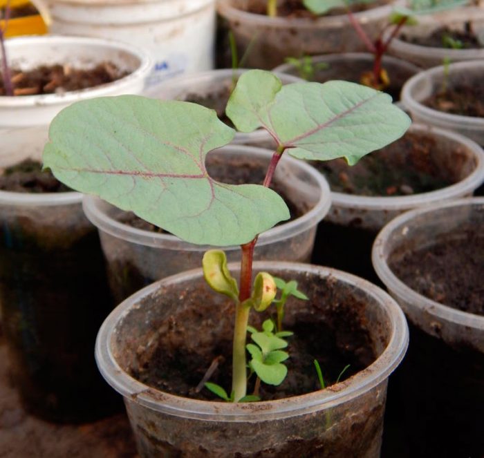 aby rozpocząć, napełnij małe kubki podłożem składającym się z piasku, darni liściastej i torfu. W każdym pojemniku wysiewa się jedno ziarno i należy je zamknąć w mieszaninie gleby na głębokość około 40 mm.uprawy są delikatnie nawilżane z butelki z rozpylaczem, a na wierzchu są pokryte folią i przenoszone do ciepłego miejsca z rozproszonym światłem. Aby sadzonki pojawiły się tak szybko, jak to możliwe, nie zapomnij regularnie wentylować i nawilżać upraw z butelki z rozpylaczem, a także upewnij się, że są ciepłe (około 23 stopni).