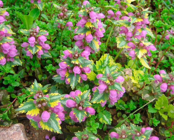 wieloletnia roślina zielna lub jednoroczna yasnotka (Lamium) jest częścią rodziny Yasnotkovye. W warunkach naturalnych roślinę tę można spotkać w Europie Wschodniej, podczas gdy woli rosnąć wzdłuż brzegów rzek. Na zewnątrz wygląda jak prosta nisko rosnąca chwast. Ale w wyniku pracy hodowców narodziły się różne kulturowe odmiany ozdobne jasnotki, które mogą mieć inny kolor, wysokość łodyg i kształt płyt liściowych. Krzew pozostaje zielony i efektowny przez całą wiosnę i lato. Nisko rosnące odmiany są uprawiane jako ozdobne rośliny okrywowe, a wysokie wieloletnie odmiany są używane do dekoracji rabatek i klombów.