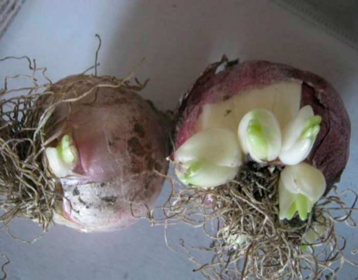 w tym czasie należy wziąć pełną odpowiedzialność za opiekę nad cebulami, ponieważ teraz w nich powstanie kwiatostan. Po wyschnięciu cebul należy usunąć resztki łusek i korzeni. Następnie są sortowane i układane w pudełkach (najlepiej w 1 warstwie). Zbyt małe dzieci najlepiej pozostawić na żarówkach. Jeśli jest mało cebul, możesz użyć papierowych torebek, na których naklejana jest podpisana etykieta, aby je przechowywać.