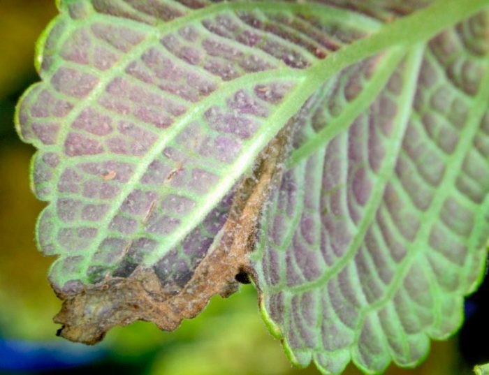 jeśli nie zrobisz terminowego szczypania lub przycinania młodego coleusa, jego łodygi staną się wydłużone. Ponadto młody krzew może rozciągać się z powodu skromnego oświetlenia, a także może się zdarzyć ze starym kwiatem. Przy zbyt intensywnym oświetleniu liście stają się wyblakłe i tracą swój kolor. Przy niewłaściwym podlewaniu krzew zaczyna zrzucać liście. Dzieje się tak zarówno przy nadmiernie rzadkim podlewaniu, jak i z powodu stagnacji płynu w systemie korzeniowym.