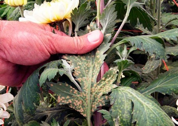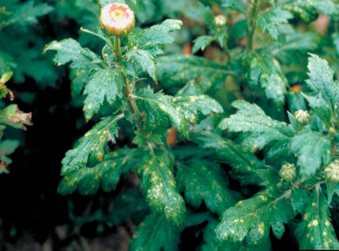 jeśli nie przestrzegasz technologii rolniczej kultury lub w kwietniku są gęste zarośla chryzantem, zwiększa się ryzyko uszkodzenia ich przez chorobę grzybową: