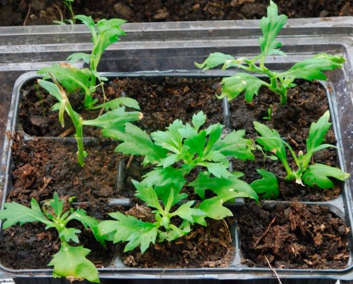 po zebraniu sadzonki są usuwane w chłodnym (od 16 do 18 stopni) i dobrze oświetlonym miejscu. Podlewanie odbywa się tylko w razie potrzeby, a górny opatrunek ― regularnie 1 raz na 2 tygodnie, w tym celu stosuje się roztwór złożonego nawozu mineralnego. W razie potrzeby podświetl sadzonki lampami fluorescencyjnymi. Pamiętaj, że sadzonki takiej kultury charakteryzują się wyjątkowo powolnym wzrostem, więc po 6 tygodniach jej wysokość osiąga tylko około 20 centymetrów.
