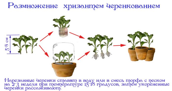 po tym, jak sadzonki osiągną wysokość od 70 do 100 mm, przeprowadza się ich przerzedzenie. W rezultacie w każdej dziurze powinna pozostać jedna najsilniejsza roślina z uformowanymi 3 lub 4 prawdziwymi płytkami liści. W razie potrzeby dodatkowe sadzonki można przesadzić w inne miejsce. Wyhodowane z nasion roczne chryzantemy zaczną kwitnąć w sierpniu. Aby krzewy cieszyły się wczesnym kwitnieniem, są uprawiane przez sadzonki.