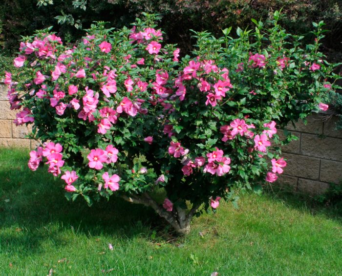opieka nad hibiskusem ogrodowym uprawianym na otwartej glebie wcale nie jest trudna. Po pojawieniu się młodych zielonych łodyg na krzaku, wszystkie wysuszone stare pędy są z niego odcinane. Systematycznie poluzuj glebę wokół drzewa, wyrywaj chwasty w odpowiednim czasie, a także zapobiegaj pogrubieniu krzewu.