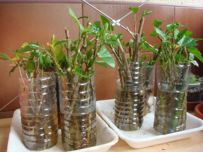 po tym, jak krzew rośnie i staje się silniejszy, można go sadzić w ogrodzie. Przy odpowiedniej i dobrej pielęgnacji hibiskus zacznie kwitnąć już w pierwszym roku po posadzeniu go na otwartej glebie. Niektórzy ogrodnicy mogą ukorzenić sadzonki w pojemniku z wodą.
