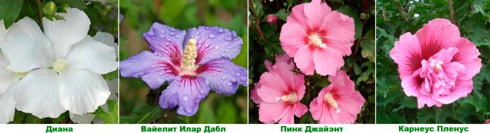 jak wspomniano powyżej, hibiskus Syryjski, a także jego odmiany, są najczęściej uprawiane w ogrodzie. Ale inne rodzaje takiej rośliny i ich różne odmiany są uprawiane na otwartym terenie.