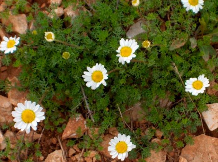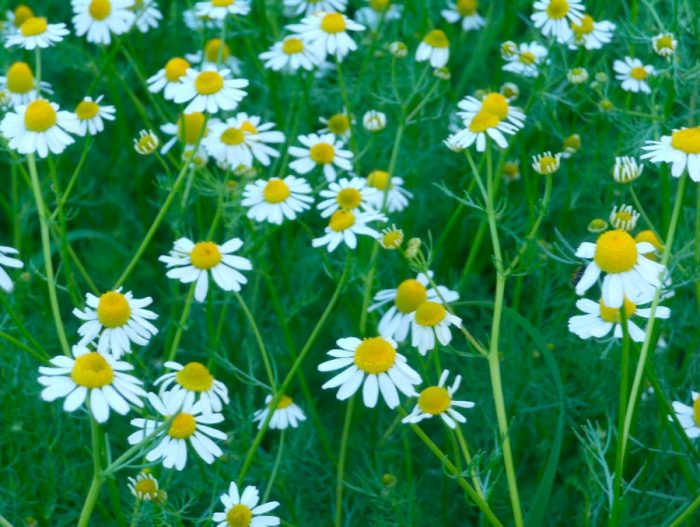 lub rumianek leczniczy (Matricaria chamomilla) lub rumianek obłożony (Chamomilla recutila). Ta roślina jest gatunkiem typowym rodzaju marticaria. Niezbyt wysoki krzew ma słaby specyficzny aromat. Jego korzeń jest prętowy i rozgałęziony. Wyprostowany, silnie rozgałęziony pojedynczy trzon jest pusty od wewnątrz, może osiągnąć wysokość około 0,4 metra. Siedzące naprzemiennie rozmieszczone płytki liściowe mają dwukrotnie Pierzasty kształt, a ich skład obejmuje spiczaste wąskoliniowe płaty. Na wierzchołkach łodyg znajdują się małe pojedyncze kwiatostany-kosze, które obejmują białe kwiaty trzciny i rurkowe ― żółte. W warunkach naturalnych taki kwiat woli rosnąć na glebach piaszczystych. A na działkach ogrodowych sadzi się go wraz z polnymi kwiatami. Lub dla niego możesz wybrać taki obszar, który zostanie następnie wykopany.