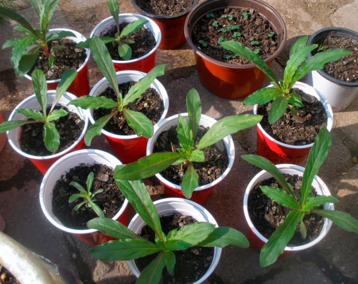 jak tylko pojawią się sadzonki, schronienie należy usunąć. Jeśli sadzonki rosną we wspólnym pojemniku, to 15-18 dni po ich pojawieniu się sadzonki należy rozłożyć na poszczególnych pojemnikach, osiągając średnicę 50-70 mm lub w większych doniczkach. Po zapuszczeniu kwitnących roślin należy je podlać roztworem nawozu mineralnego o słabym stężeniu. Gleba powinna być nieco wilgotna, ale nie powinna zawierać zbyt dużej ilości płynu, w przeciwnym razie roślina może umrzeć z powodu czarnej nogi, ta choroba grzybowa atakuje krzewy w okresie sadzonek. Kiedy gomfrena jest podlewana, konieczne jest ostrożne poluzowanie powierzchni mieszanki gleby wokół krzaków. Jeśli zostaną zauważone pierwsze oznaki choroby, musisz wyrwać wszystkie dotknięte krzewy, a powierzchnia mieszanki gleby jest pokryta warstwą popiołu drzewnego, a kwiaty nie powinny być podlewane przez pewien czas.
