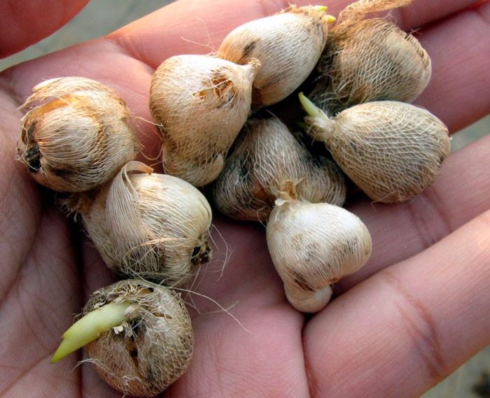 żarówki należy zakopać w glebie o 50-80 mm (w zależności od ich wielkości). Odległość między otworami i między rzędami powinna wynosić około 8-10 centymetrów. Posadzone bulwy wymagają obfitego podlewania. Krzewy posadzone w maju zaczną kwitnąć w sierpniu, a zakończą się wraz z nadejściem pierwszych przymrozków.