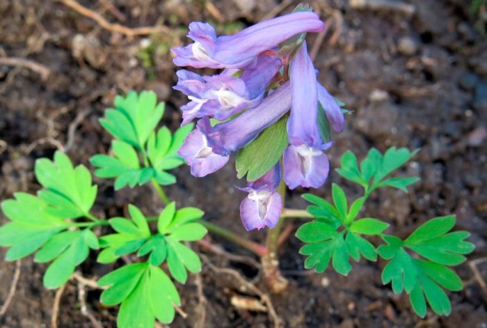 kwitnąca roślina czubata jest byliną i jednoroczną. Kłącze takiej rośliny jest dość masywne, znajduje się na dość dużej głębokości i składa się z rozgałęzionych procesów. Na poszczególnych procesach czasami obserwuje się tworzenie bulw o zaokrąglonym kształcie, w których znajdują się składniki odżywcze. Wysokość wyprostowanych pędów może wynosić od 0,15 do 0,45 m.u podstawy łodyg umieszcza się 2-4 paprociowe płytki liściowe o ciemnozielonym kolorze z niebieską powłoką. Liście mogą być dwa lub trzy razy złożone, kształt płatów jest trójkątny lub okrągły, a każdy z nich ma swój ogonek. Tworzenie cylindrycznych kwiatostanów racemose na wierzchołkach łodyg obserwuje się w połowie kwietnia. Kwiatostany obejmują 5-35 długich kwiatów, które mogą być pomalowane na różowo, fioletowo, biało, fioletowo lub żółto. Kwiaty mają długość korony od 1,5 do 2,5 centymetra, spiczaste działki są małe, a przylistki są stosunkowo duże. Wszystkie kwiaty mają dość długie ostrogi, w których znajduje się nektar. Mogą go zdobyć tylko owady, które mają długą trąbę. Owoc jest podłużnym pudełkiem, wewnątrz którego znajdują się małe błyszczące czarne nasiona. Każde ziarno ma mięsisty wzrost, który mrówki po prostu uwielbiają. W rezultacie mrówki mogą przeciągać te nasiona na dość dużą odległość.