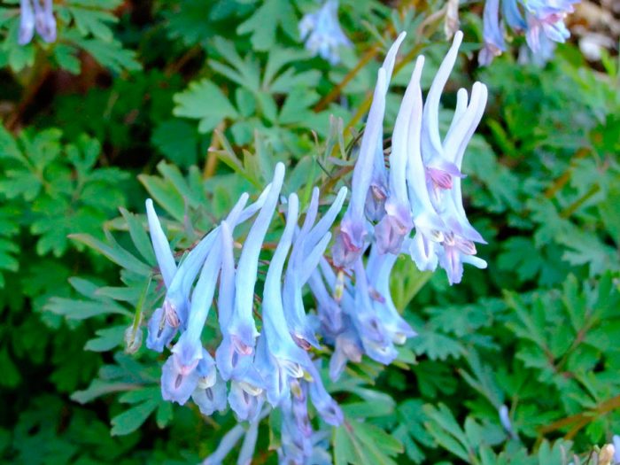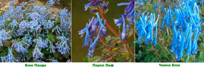 - Blue Panda . Płytki liściowe są pomalowane na jasny zielono-niebieski odcień. Kwiaty są pomalowane na lazur, ostrogi są wygięte.