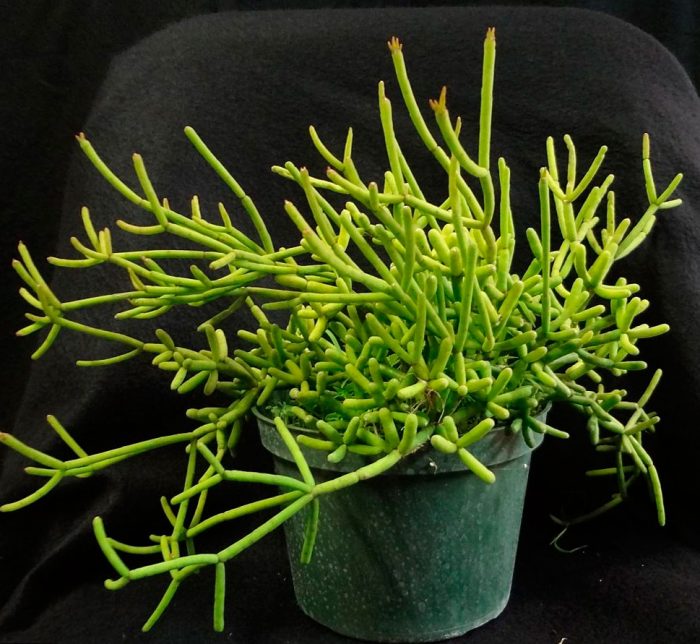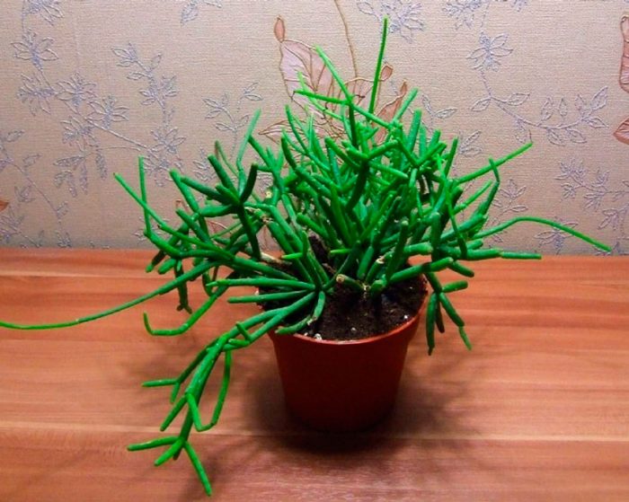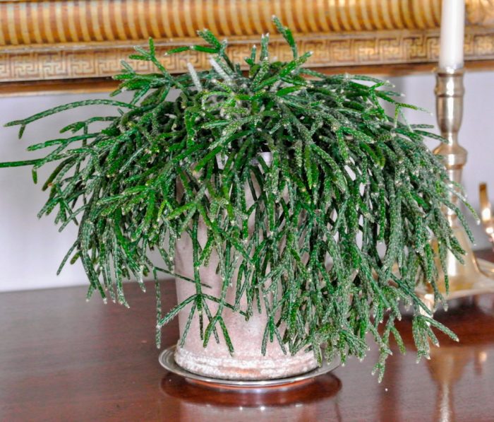 ta epifityczna soczysta roślina jest również uprawiana w warunkach pokojowych. Jego pierwotne łodygi osiągają długość do 0,6 m. a długość końcowych pędów wynosi około 60 mm, a ich średnica nie przekracza 2 mm.