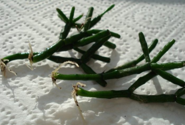 ripsalis można bardzo łatwo rozmnażać przez sadzonki. Aby to zrobić, odłam część dorosłej (nie starej ani zbyt młodej) łodygi i pozostaw ją na chwilę na zewnątrz do wyschnięcia. Aby ukorzenić takie sadzonki, hodowcy kwiatów nie używają wody, natychmiast sadzi się je w zwilżonej mieszaninie składającej się z jednej części torfu i takiej samej ilości piasku rzecznego. Najszybciej sadzonki zapuszczają korzenie w cieple(od 23 do 25 stopni). Aby stworzyć efekt cieplarniany, zaleca się przykrycie pojemnika przezroczystą czapką na górze, ale nie zapomnij codziennie wietrzyć sadzonek, a także usunąć kondensat z osłony w odpowiednim czasie.
