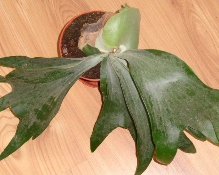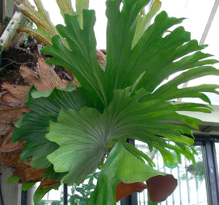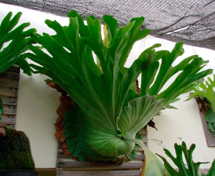 w platycerium wyróżnia się dwa typy, a mianowicie zarodniki i sterylne. W dolnej części krzewu rosną sterylne wyże, jesienią pozostają zielone, aw okresie wiosenno-letnim żółkną i wysychają. Eksperci radzą, aby w żadnym wypadku ich nie odcinać, ponieważ w przypadku systemu korzeniowego dane vaya są bardzo ważnym źródłem pożywienia. Aby wykonać swoje główne zadanie, zarodnikowe płytki liściowe zaczynają się bardzo późno, konieczne jest, aby krzew miał co najmniej 5 lat. Powierzchnia tych Wai jest pokryta białymi nitkami, chronią je przed jasnym światłem, a także pomagają chronić wilgoć.