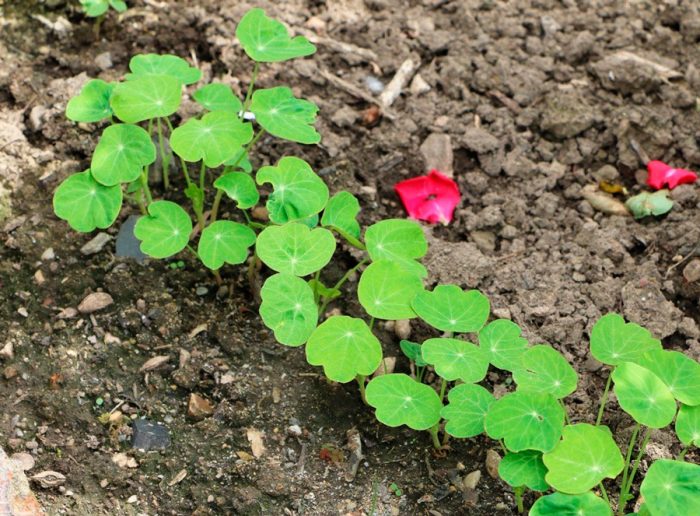 sadzenie sadzonek nasturcji na otwartej glebie odbywa się w pierwszej dekadzie czerwca. Do sadzenia musisz wybrać słoneczny obszar, który ma niezawodną ochronę przed zimnymi wiatrami. Jeśli ta kultura kwiatowa zostanie wyhodowana w zacienionym miejscu, jej kwitnienie nie będzie tak bujne i spektakularne. Gleba potrzebuje lekkiego odżywczego lekko kwaśnego, a także dobrze przepuszczalnego. Jeśli w glebie jest zbyt dużo materii organicznej, warzywa w krzakach będą rosły bardzo intensywnie, ale nie kwitną. Podczas uprawy nasturcji na nadmiernie zubożonej glebie jej płytki liściowe stają się małe, dzięki czemu pędy wyglądają na nagie, a kwitnienie traci swoją wysoką dekoracyjność. Jeśli wybierzesz stojącą wilgotną glebę do sadzenia, roślina zgnije.