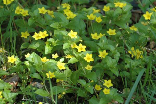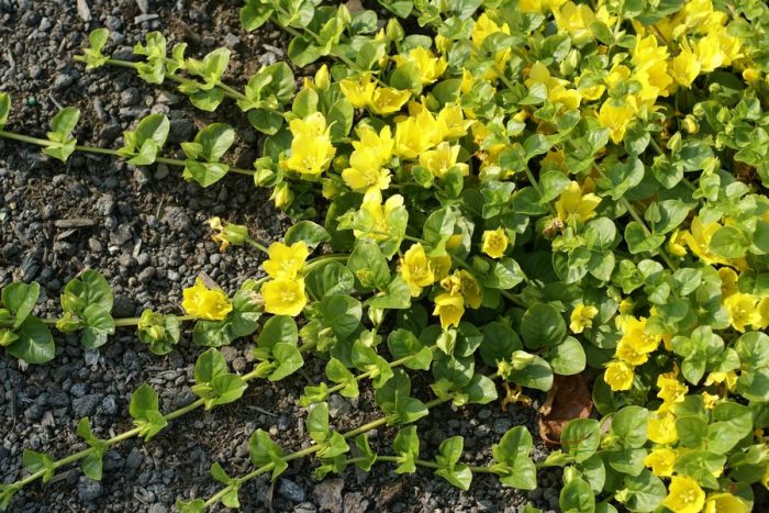 w warunkach naturalnych gatunek ten można spotkać w Japonii, Europie i Ameryce Północnej. Gatunek ten woli rosnąć w zacienionych gajach, na obrzeżach bagien, na łąkach zalewowych, a także wzdłuż brzegów różnych zbiorników wodnych i rzek. Ta wieloletnia roślina okrywowa. Długość leżącej łodygi wynosi około 0,3 m. przeciwnie rozmieszczone owalne płytki liściowe mają krótkie ogonki i długość około 25 mm. pojedyncze kwiaty pachowe są pomalowane na Żółto i osiągają średnicę 25 MM. kiedy roślina zakwitnie, zależy to bezpośrednio od poziomu światła. Jeśli krzewy zostaną posadzone w dobrze oświetlonym miejscu, początek kwitnienia nastąpi w ostatnich dniach maja lub czerwca. Gatunek ten może tworzyć osłonę zarówno na stromych zboczach, jak i na płaskiej powierzchni. Najbardziej popularna jest odmiana Aurea: kolor liści jest zielono-żółty, roślina ta nie ma wysokiej odporności na mróz w porównaniu z głównym gatunkiem.