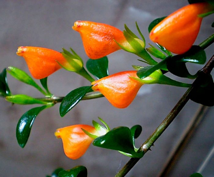 roślina nematanthus jest przedstawicielem rodziny Gesneriaceae. Ten rodzaj łączy 6 gatunków reprezentowanych przez krzewy, krzewy, epifityczne i półpifityczne pnącza. W naturze nematanthus występuje najczęściej w Ameryce Południowej. Nazwa rodzaju pochodzi od dwóch greckich słów: "nema", co przekłada się na" nić "i" anthos " — "kwiat". Faktem jest, że u niektórych gatunków takiej rośliny kwiaty mają długą i cienką szypułkę. Mogą być pomalowane na pomarańczowo, żółto,różowo lub czerwono. Zewnętrznie nematanthus jest bardzo podobny do kolumnii lub zipocirty. Dlatego część gatunków tych roślin została włączona do rodzaju Nematanthus.