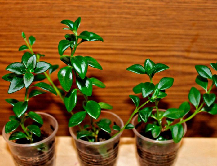 taki kwiat można również rozmnażać za pomocą sadzonek wierzchołkowych lub łodygowych. Zbiór sadzonek można wykonać o każdej porze roku, a ich długość powinna wynosić 70-100 mm.od dolnej trzeciej części segmentu wszystkie płytki liści są odcięte, po czym sadzi się je na luźnym podłożu, dobrze przepuszczającym powietrze lub w mchu torfowcowym. Krzew macierzysty, z którego zostały pobrane sadzonki, po raz pierwszy zaleca się zacienienie przed bezpośrednimi promieniami słońca. Zaleca się sadzenie ukorzenionych sadzonek w stałej doniczce po kilka sztuk. Po pewnym czasie zaczną aktywnie rosnąć i staną się bujnymi krzewami.