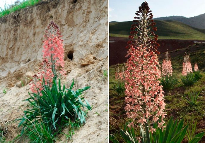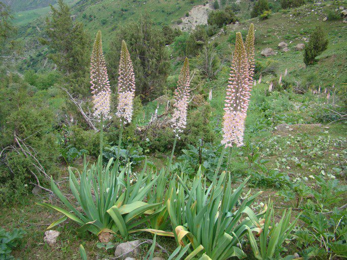 ten gatunek jest uważany za jeden z najczęstszych. W naturze można go spotkać od południowo-zachodniego Pamiru-Alai do zachodniego Tian Shan, a ten kwiat można również zobaczyć w Pakistanie, w północnej części Afganistanu i północno-zachodnich regionach Iranu. Wysokość krzewu może osiągnąć 1,5 m. korzenie są lekko wrzecionowate-pogrubione, mają prawie Cylindryczny kształt, a na ich powierzchni często występuje pokwitanie, kolor jest ciemnoszary. Na jednym krzaku może dorastać do 65 kilowatych ciemnozielonych wąskoliniowych płyt liściowych, na ich powierzchni znajduje się niebieskawa powłoka, są szorstkie na krawędziach. Kolor łodygi jest ciemnozielony, na jego powierzchni znajduje się niebieska powłoka, osiąga wysokość nie większą niż 100 centymetrów. Znajduje się na nim kwiatostan racemose o stożkowym lub cylindrycznym kształcie, którego długość może osiągnąć 0,6 metra, a średnica-do 15 centymetrów. Średnica szeroko otwartych kwiatów wynosi 35 mm, Kolor ich perianthes jest jasnoróżowy lub różowy, u podstawy znajduje się żółta plamka, a także mają ciemnoczerwoną żyłę. Istnieją kwiaty z białymi perianthami z zieloną żyłą. Czas kwitnienia zależy od klimatu w regionie, w którym roślina jest uprawiana i można ją zaobserwować w maju i sierpniu. Uprawiana od 1881 r.